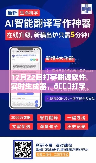 🔥随着科技的飞速发展,一款全新的打字翻译软件实时生成器在12月22日正式亮相,它如同一颗璀璨的星辰,划破传统语言交流的夜空,为全球的科技爱好者带来前所未有的震撼体验!就让我们一起领略这款产品的独特魅力,探索其最新的功能亮点,感受科技如何重塑我们的生活。